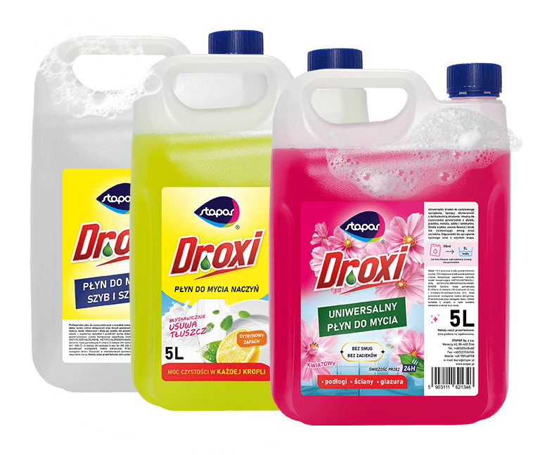 Płyny Dr Oxi do mycia szyb, naczyń oraz powierzchni uniwersalnych skutecznie usuwają codzienne zabrudzenia, tłuszcz i osady. Zapewniają czystość, połysk i świeżość, ułatwiając utrzymanie porządku w całym domu.