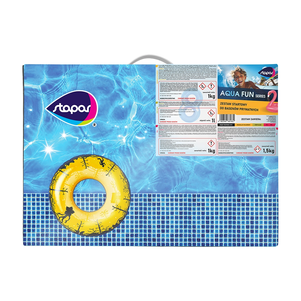 AQUA FUN Zestaw startowy do basenów prywatnych to kompletny pakiet niezbędnych środków do utrzymania czystości i odpowiedniego poziomu chemii w wodzie basenowej. W skład zestawu wchodzą: